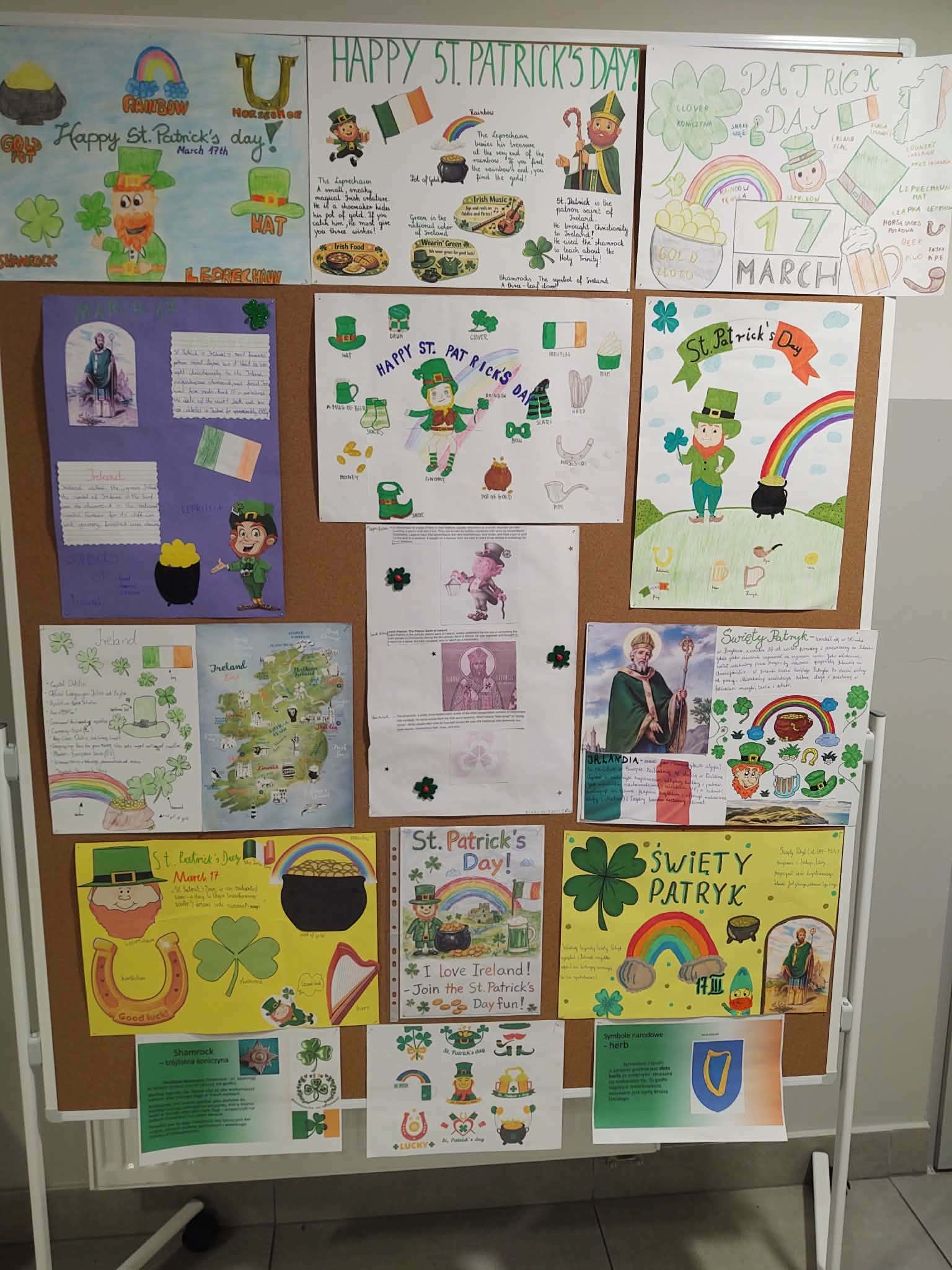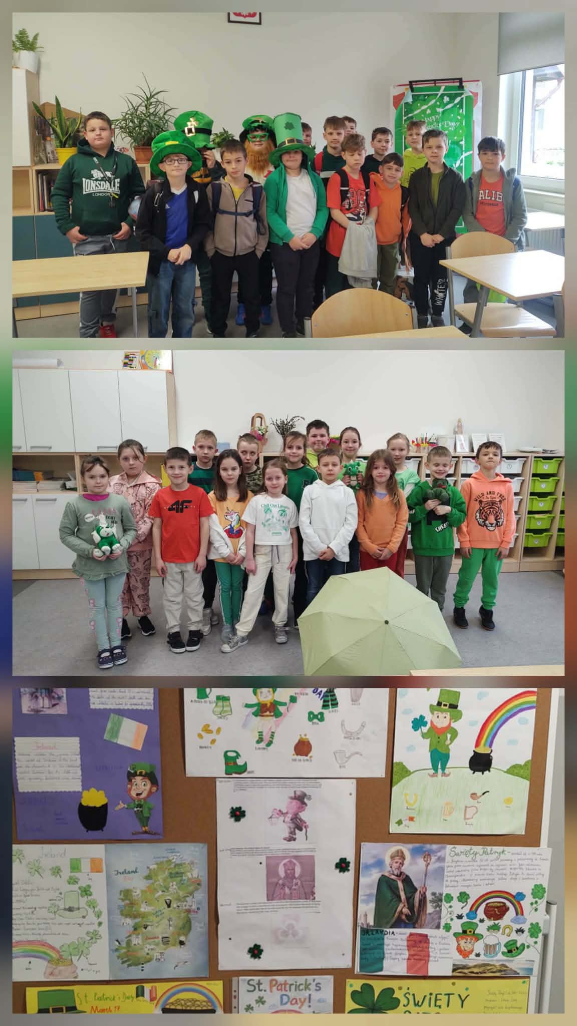 17 marca nie tylko w Irlandii obchodzony jest Dzień Świętego Patryka. Według Irlandczyków wszyscy w tym dniu są Irlandczykami. Również w naszej szkole pamiętaliśmy o tym święcie. Uczniowie i nauczyciele ubrani byli na zielono lub w kolorach flagi irlandzkiej. Niektórzy uczniowie przynieśli zielone maskotki. Dzień Świętego Patryka był w tym tygodniu tematem lekcji języka angielskiego. Oprócz tego chętni uczniowie klasy IV wykonali plakaty o Irlandii i Św. Patryku.