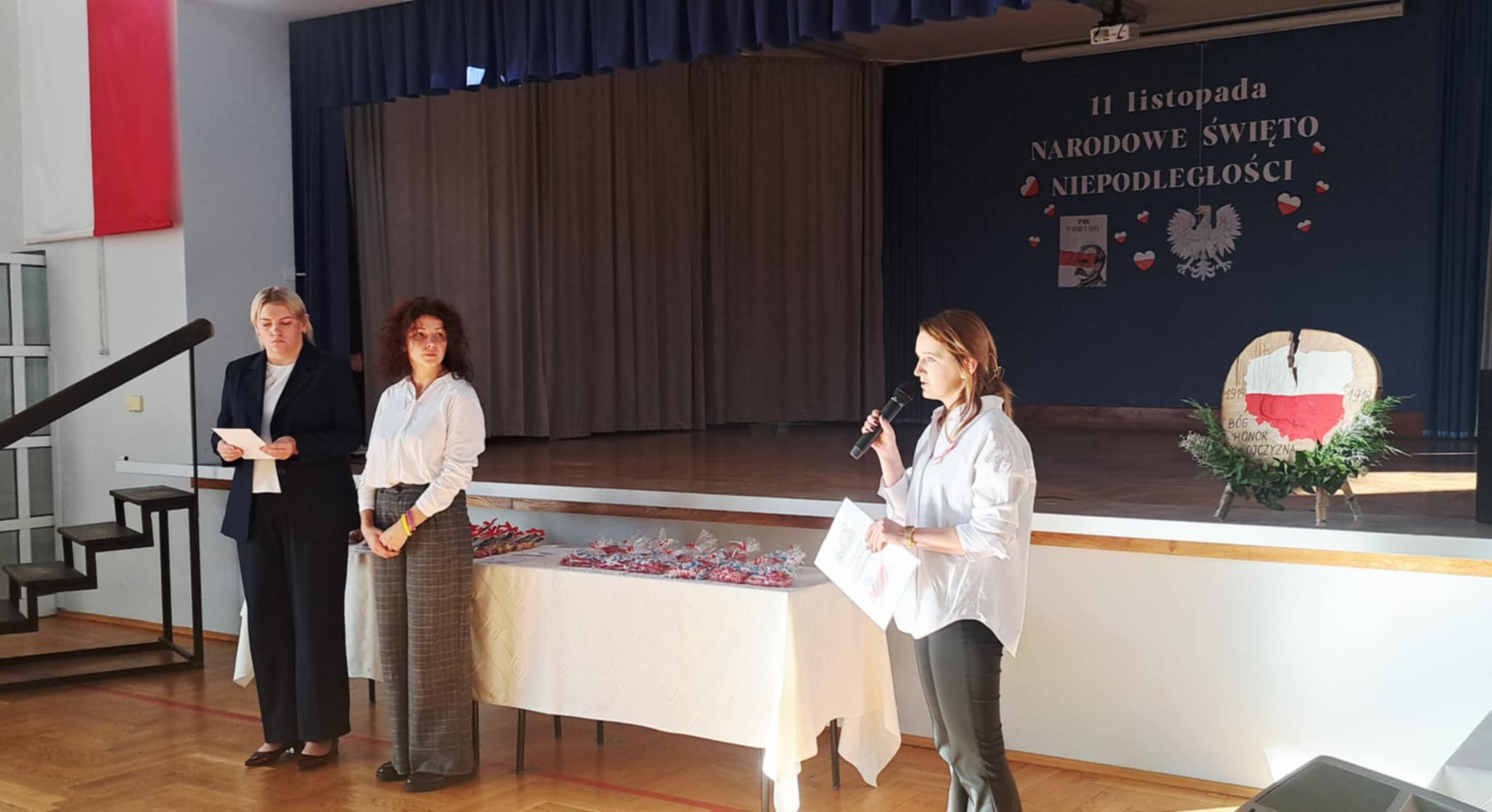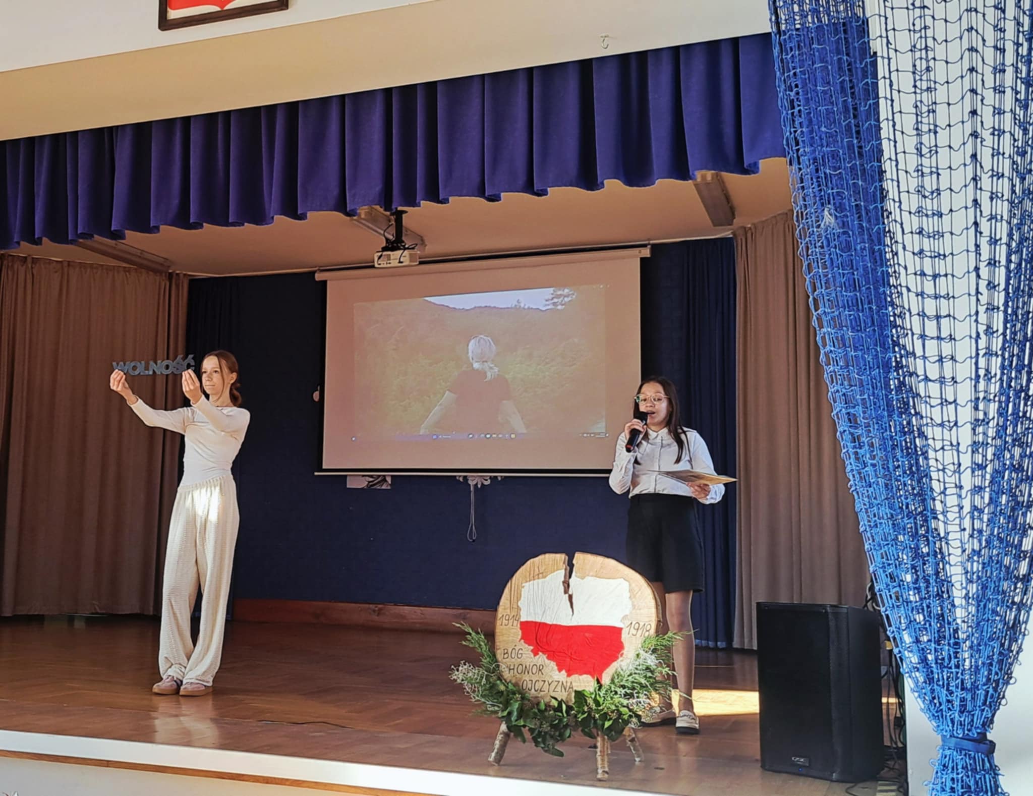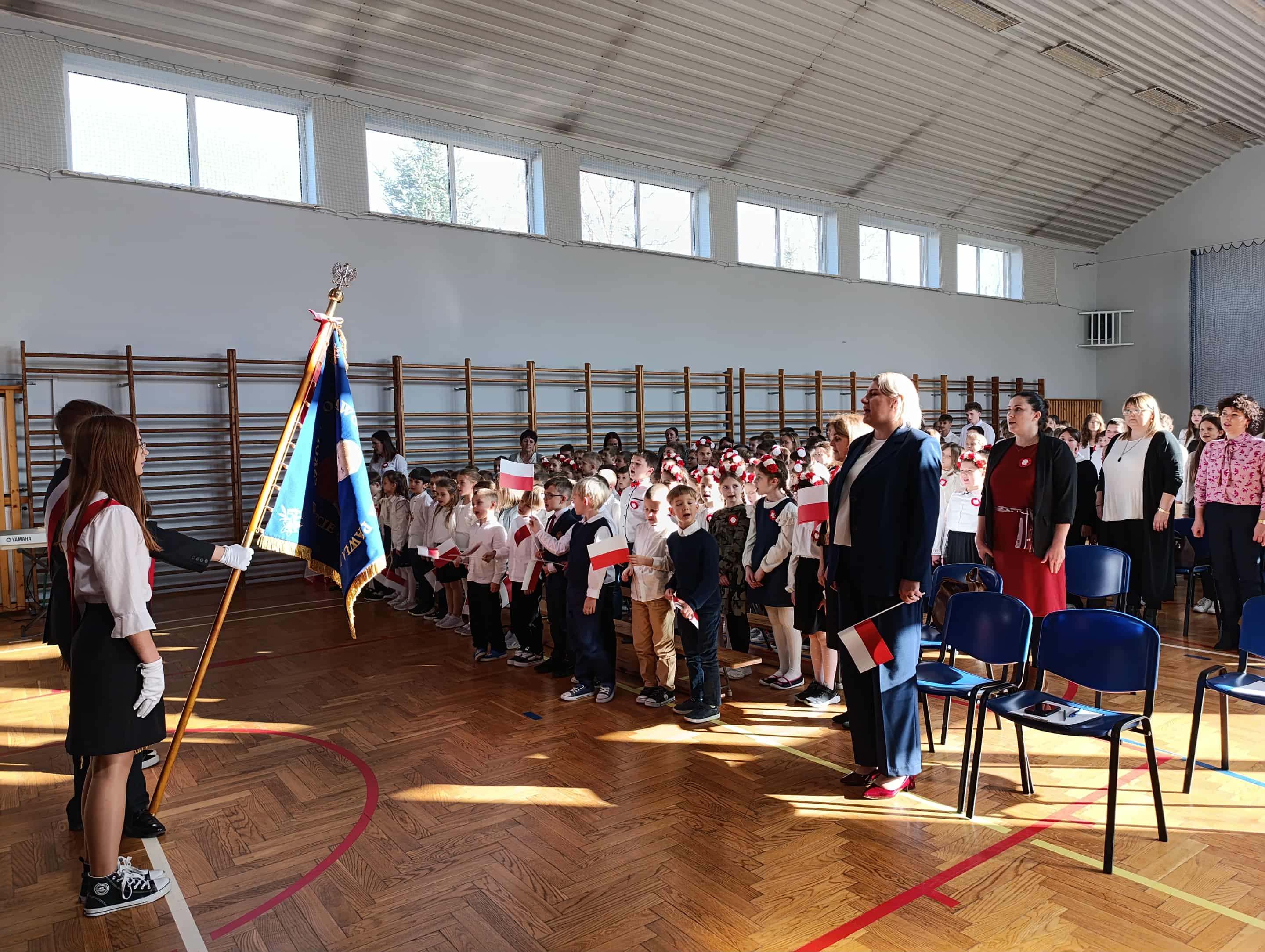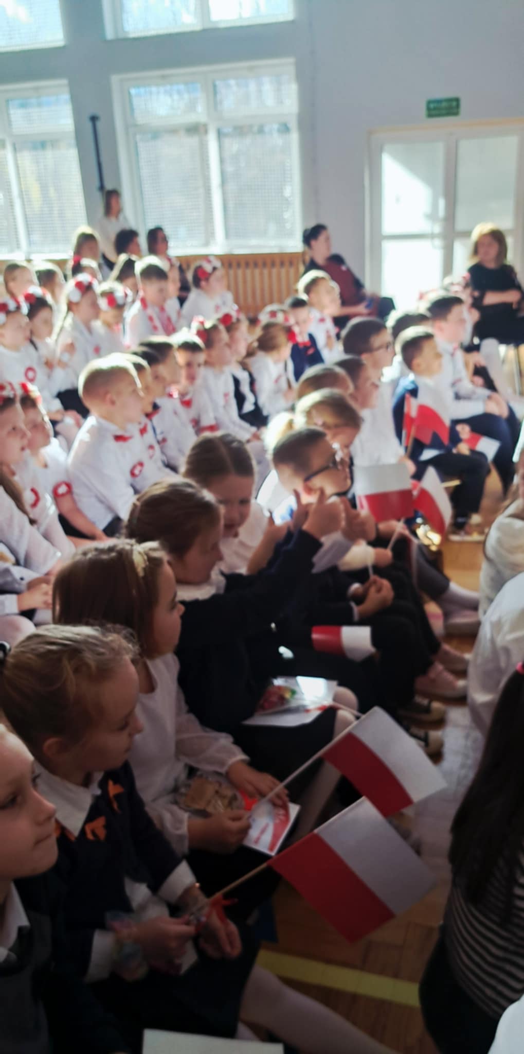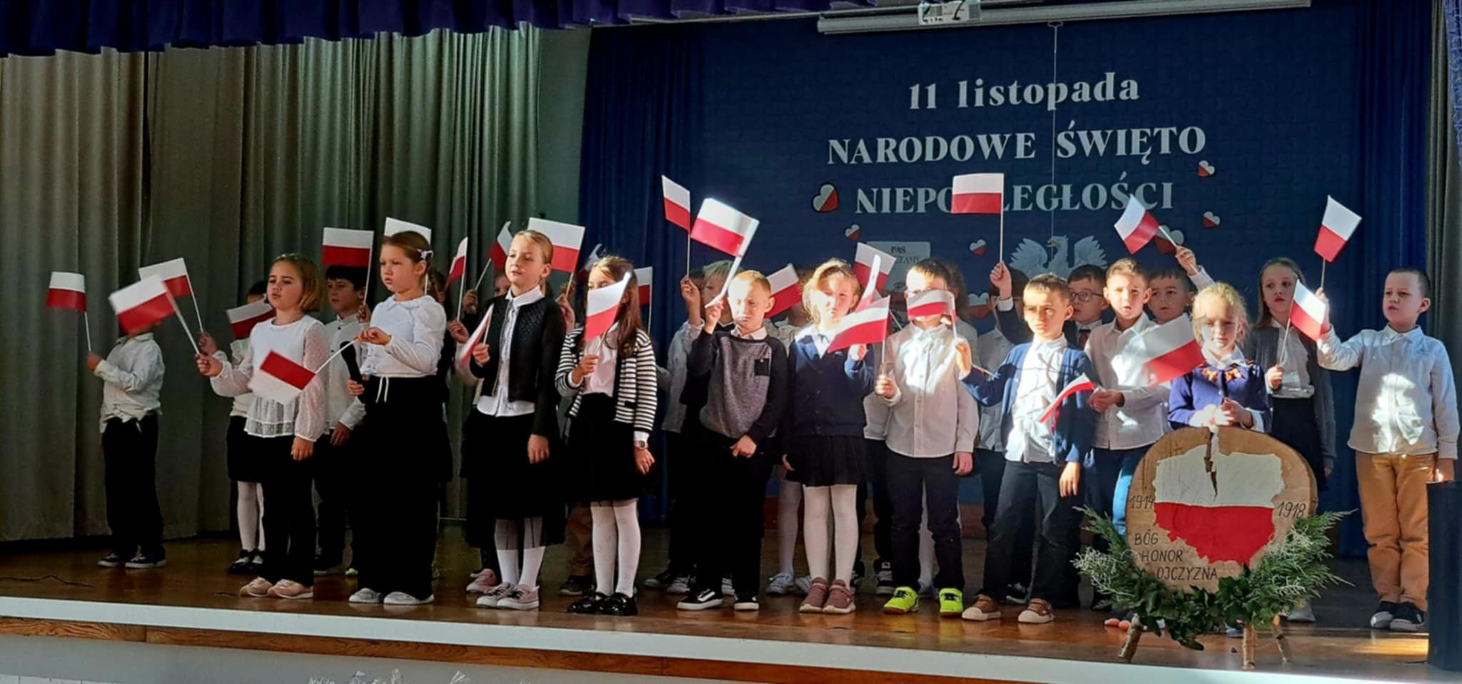 Narodowe Święto Niepodległości to dla Polaków jedno z najważniejszych świąt państwowych. Podczas corocznych obchodów tego święta czcimy pamięć tych, dzięki którym żyjemy dzisiaj w wolnej Polsce. Dnia 12 listopada społeczność naszej szkoły uczciła 107 rocznicę tego ważnego wydarzenia, spotykając się na sali gimnastycznej na koncercie pieśni patriotycznych „Zaśpiewajmy dla Niepodległej”. Uroczystość rozpoczęła się wykonaniem 4 zwrotek hymnu „Mazurek Dąbrowskiego” w ramach ogólnopolskiej akcji „Szkoła do hymnu”. Wspólne śpiewanie hymnu narodowego to nie tylko piękna tradycja, ale także ważna lekcja patriotyzmu, wyraz wspólnoty i tożsamości, szacunku dla symboli narodowych oraz dumy z bycia Polakami. Koncert otworzył występ uczennic z klasy 5 i 7, które wykonały wokalno- taneczną interpretację utworu „Wolność”. Na scenie pojawili się finaliści oraz uczestnicy szkolnego konkursu „Zaśpiewajmy dla Niepodległej. Nastąpiło wręczenie dyplomów i nagród, a także występy zwycięzców poszczególnych kategorii. Następnie na scenie prezentowały się klasy I- VIII, każda z przygotowaną piosenką, wprowadzając wszystkich w podniosły i radosny nastrój. Usłyszeliśmy między innymi: Legiony, Szarą Piechotę, Jesteśmy Polką i Polakiem, Godzina W, Ojczyzno ma. Uczniowie ubrani byli odświętnie- nie zabrakło też biało-czerwonych atrybutów: kokard narodowych, flag i kwiatów, co podkreślało patriotyczny charakter wydarzenia. Było uroczyście, wzruszająco i naprawdę wyjątkowo!
