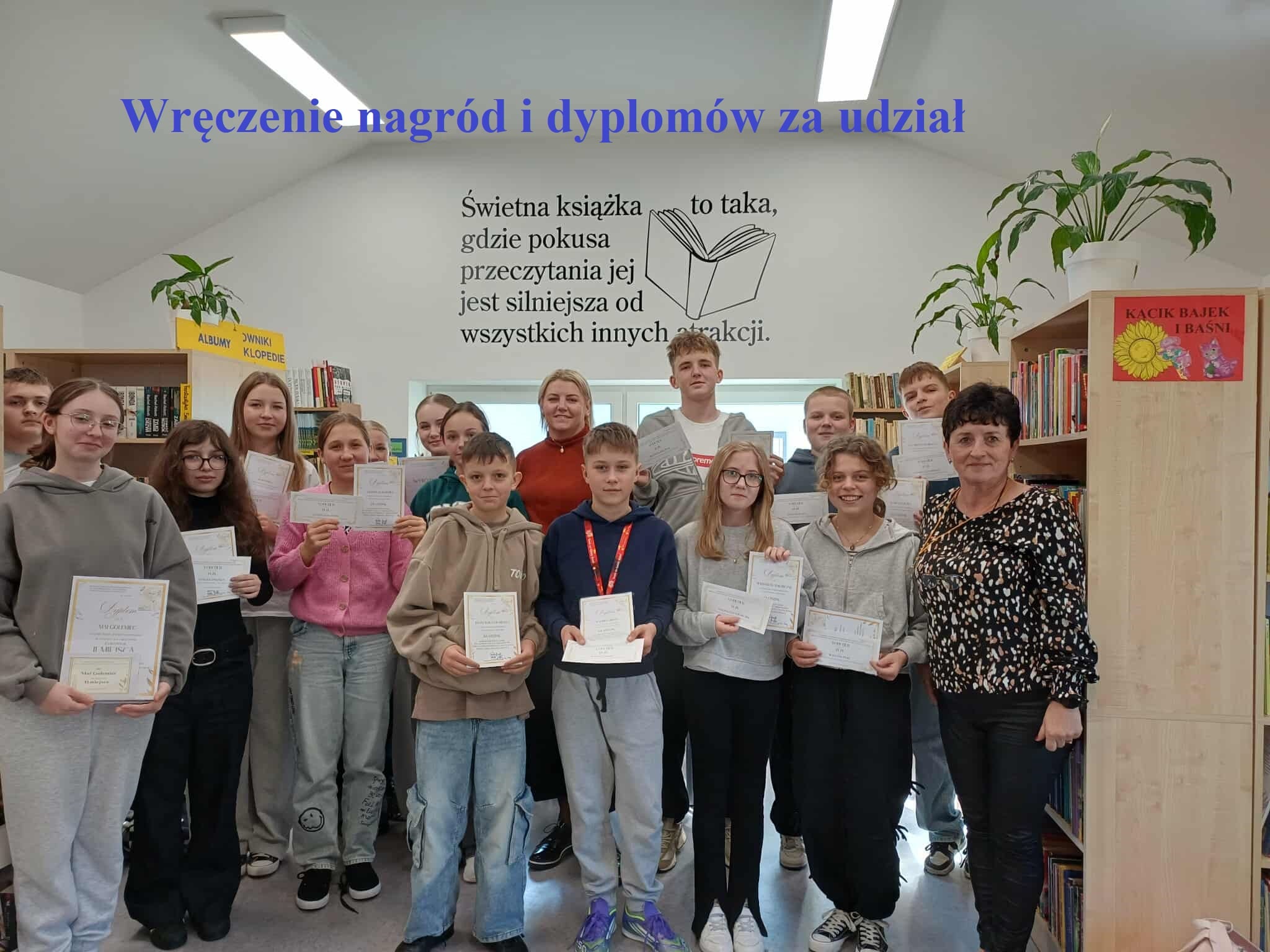 Pozostałym uczestnikom konkursu wręczono w kolejnym dniu dyplomy za udział, książki dla absolwentów oraz vouchery dla uczniów SP w Łąkcie Górnej.