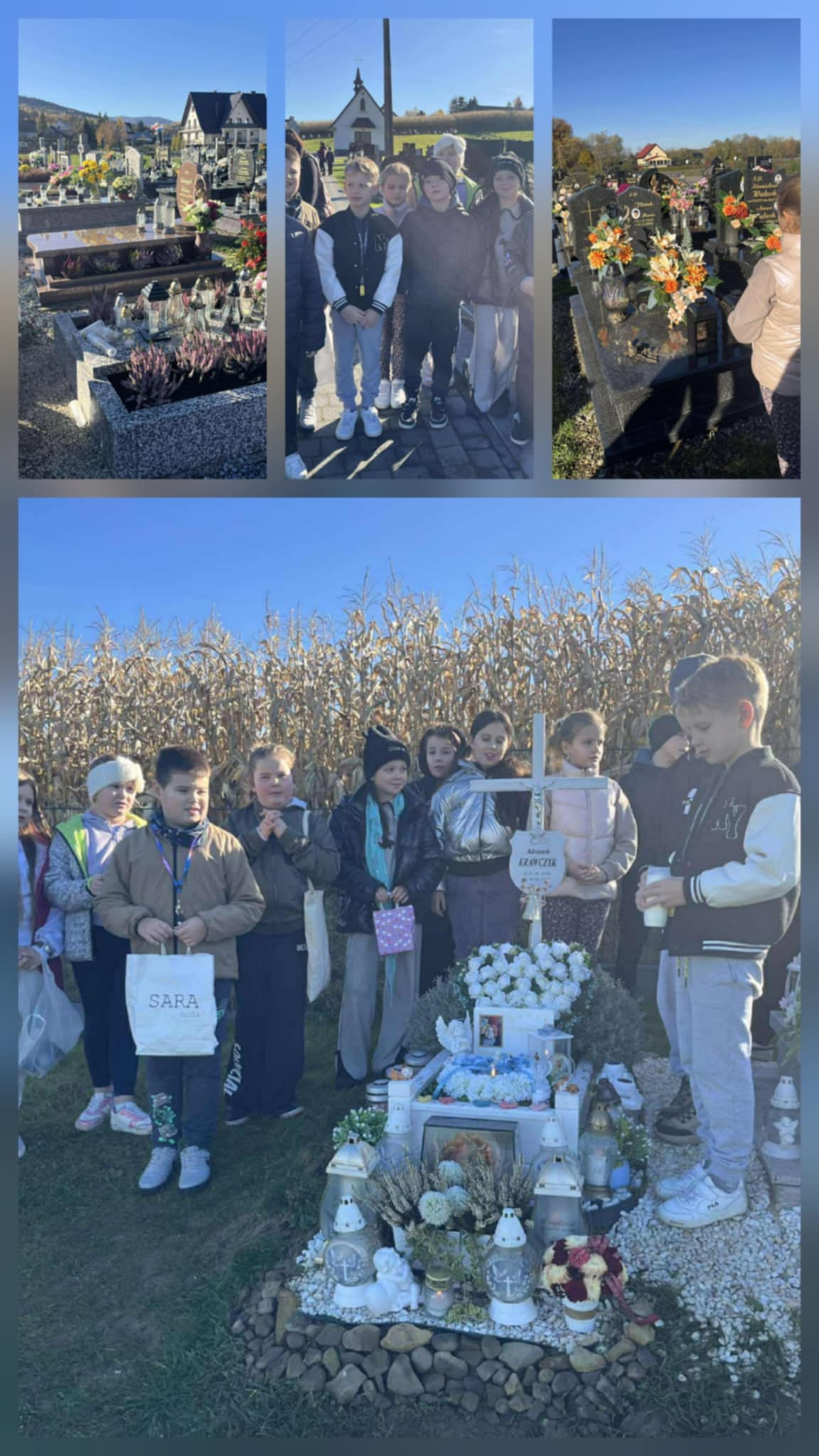 Dzieci z pomocą nauczycieli zapaliły znicze na grobach. Nauczycielki wskazały uczniom jak się należy zachować na cmentarzu, by nie zakłócać ciszy panującej w tym szczególnym miejscu oraz modlitwy osób odwiedzających cmentarz. Dla uczniów była to doskonała okazja do poznania zwyczajów związanych z tą ważną uroczystością. Dowiedzieli się, jak ważne jest pielęgnowanie wspomnień o bliskich, nawet jeśli ich już nie ma wśród nas.