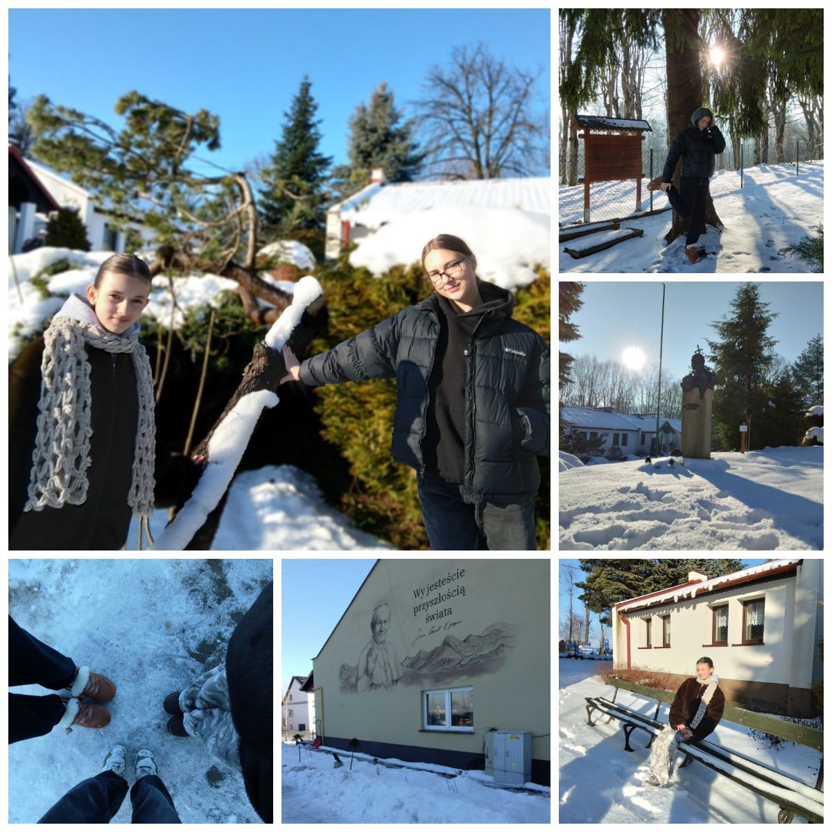 16 stycznia 2026 roku lekcja plastyki w klasie VII była zupełnie inna niż wszystkie, ponieważ sala lekcyjna zamieniła się w plener fotograficzny na świeżym powietrzu. Zadaniem dziewięciu grup było uchwycenie piękna zimowego pejzażu, co okazało się ciekawym wyzwaniem artystycznym. Uczniowie fotografowali teren wokół szkoły, wykonywali też sobie zdjęcia w zimowej scenerii.