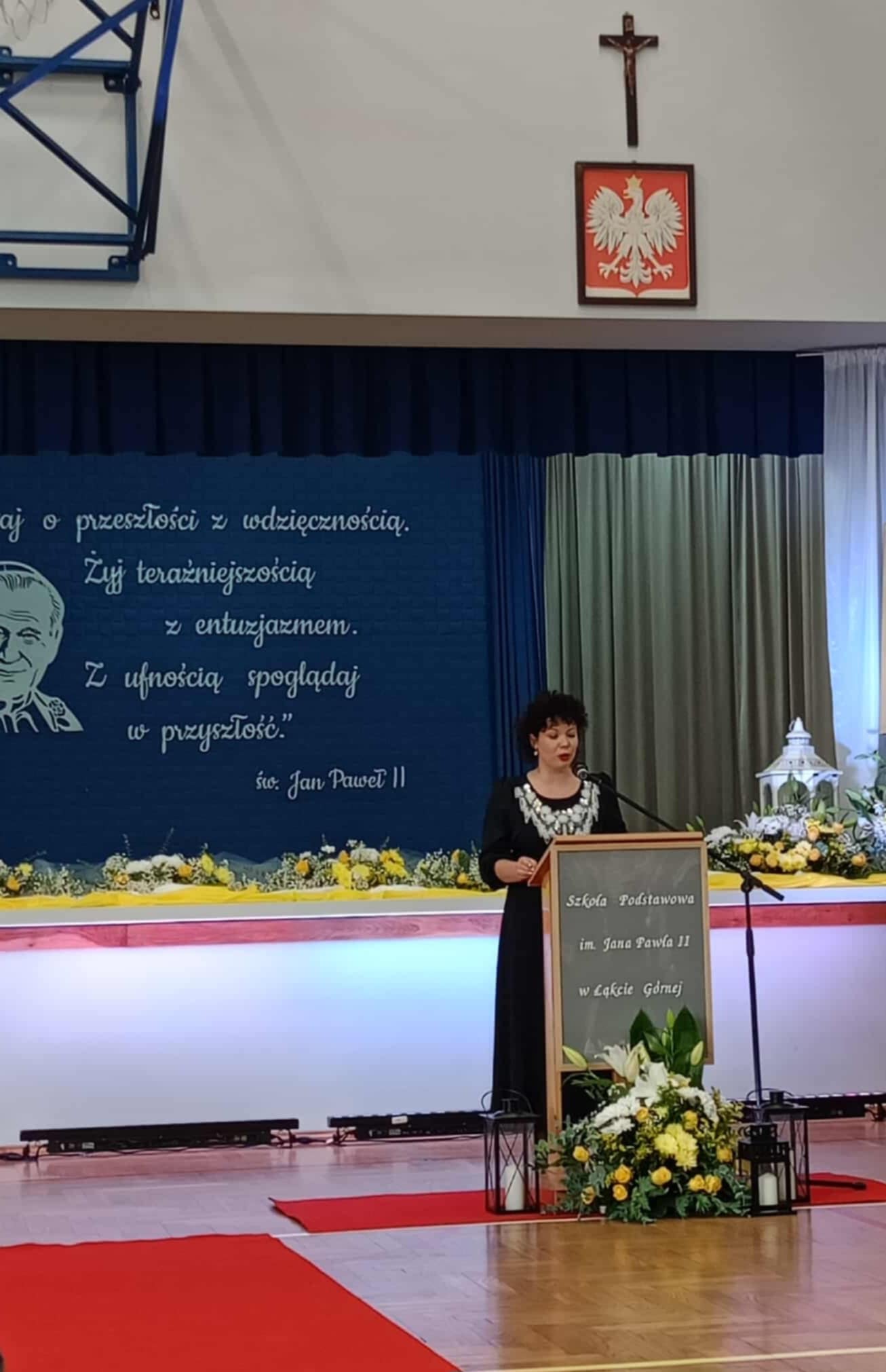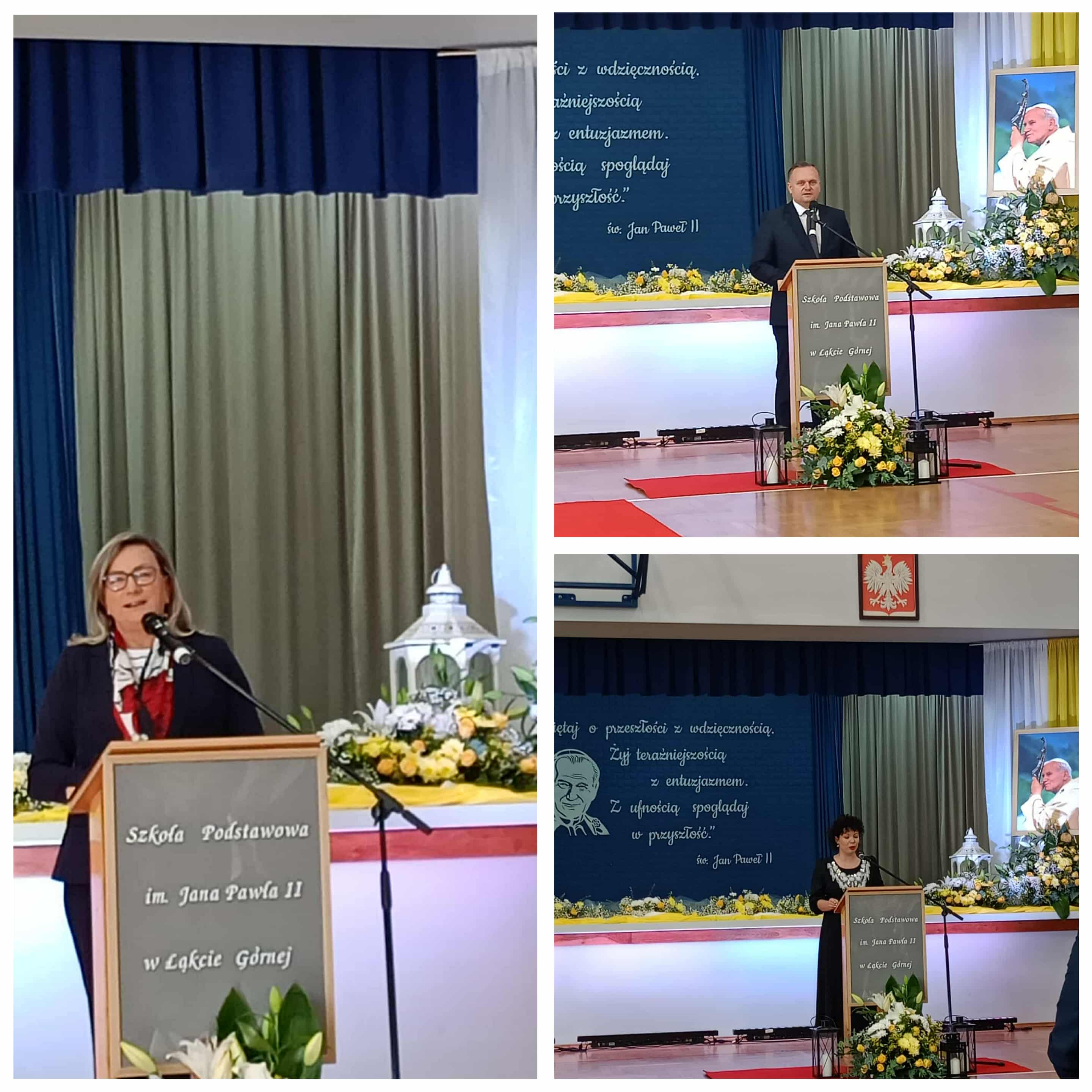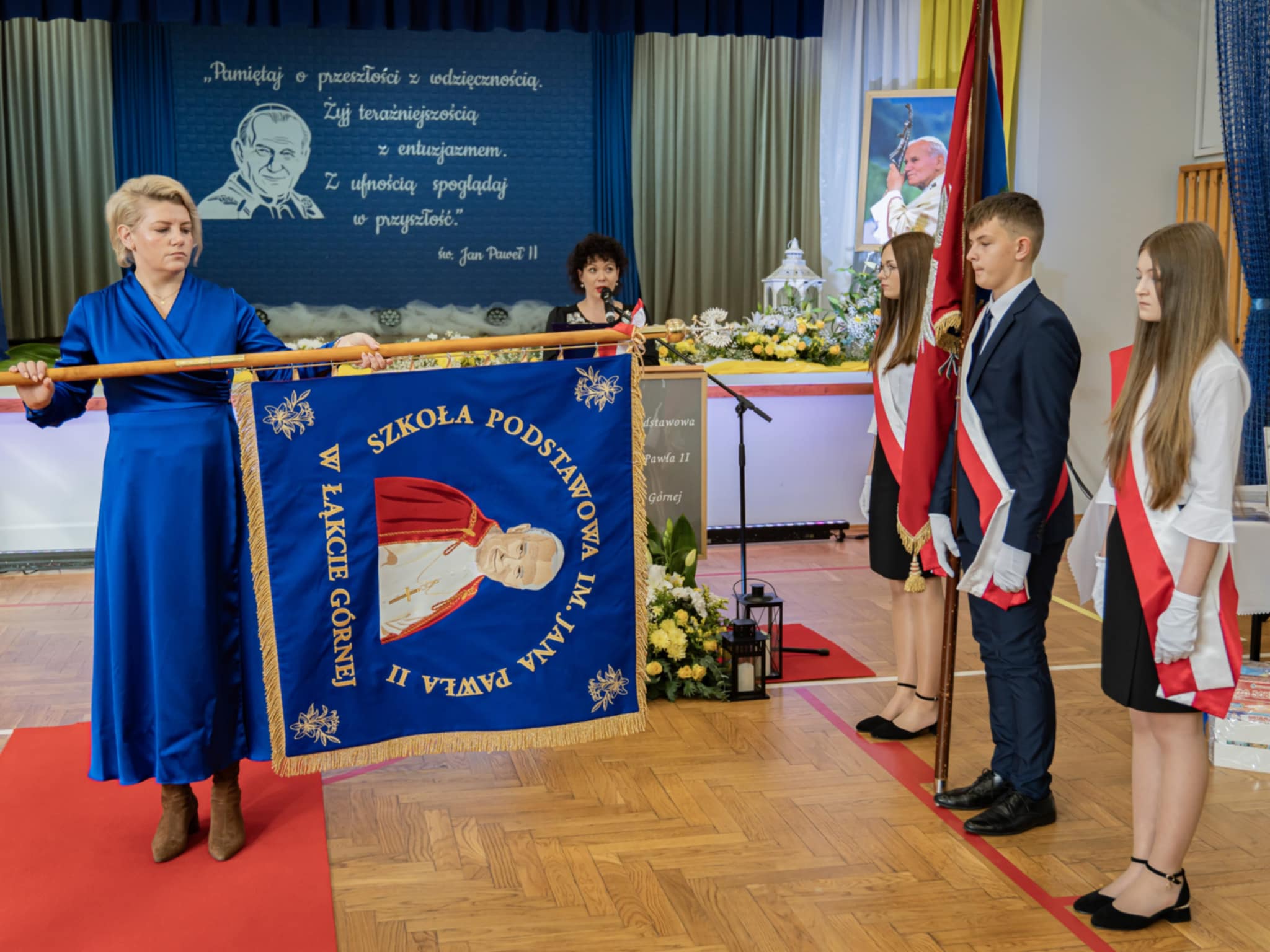 We wtorek 21 października 2025 roku w Łąkcie Górnej odbyła się niezwykle podniosła uroczystość — oficjalne otwarcie nowego budynku Szkoły Podstawowej im. Jana Pawła II w Łąkcie Górnej oraz poświęcenie nowego sztandaru szkoły. Był to dzień pełen wzruszeń, radości i dumy, który na długo pozostanie w pamięci uczniów, nauczycieli i wszystkich mieszkańców naszej miejscowości. W wydarzeniu uczestniczyli uczniowie, rodzice, nauczyciele, parlamentarzyści przedstawiciele władz samorządowych, duchowieństwa oraz zaproszeni goście: