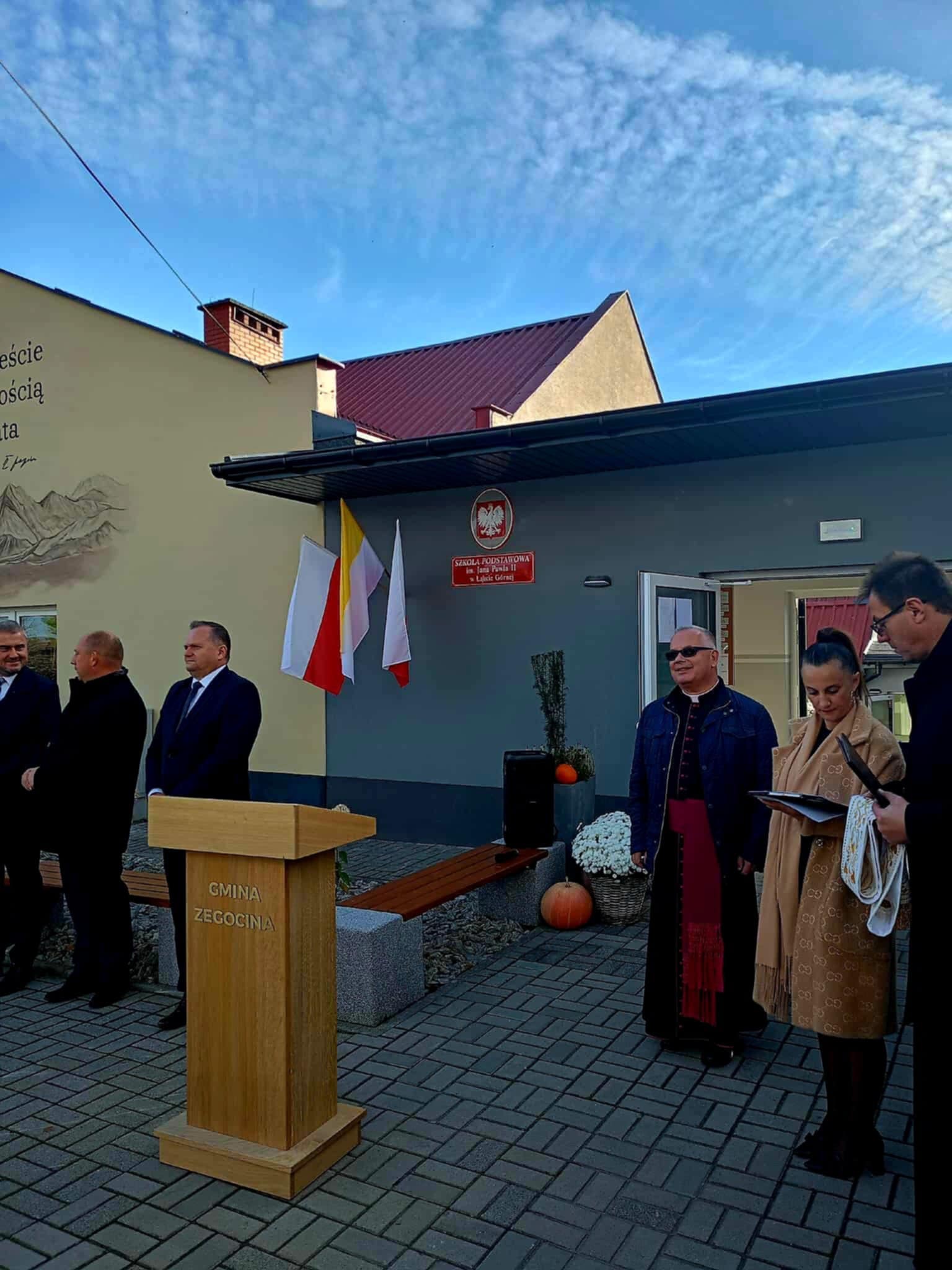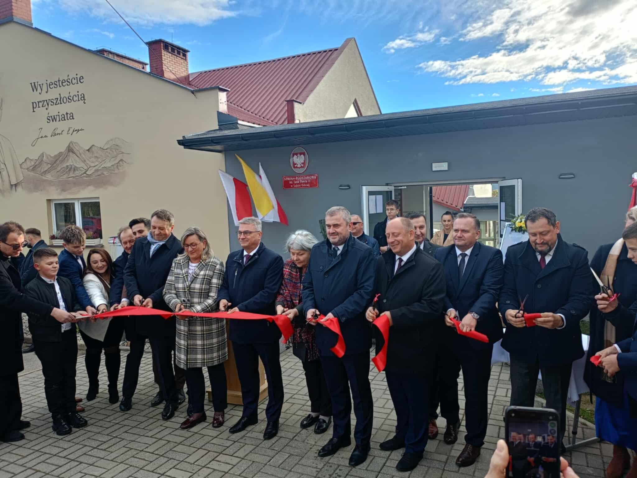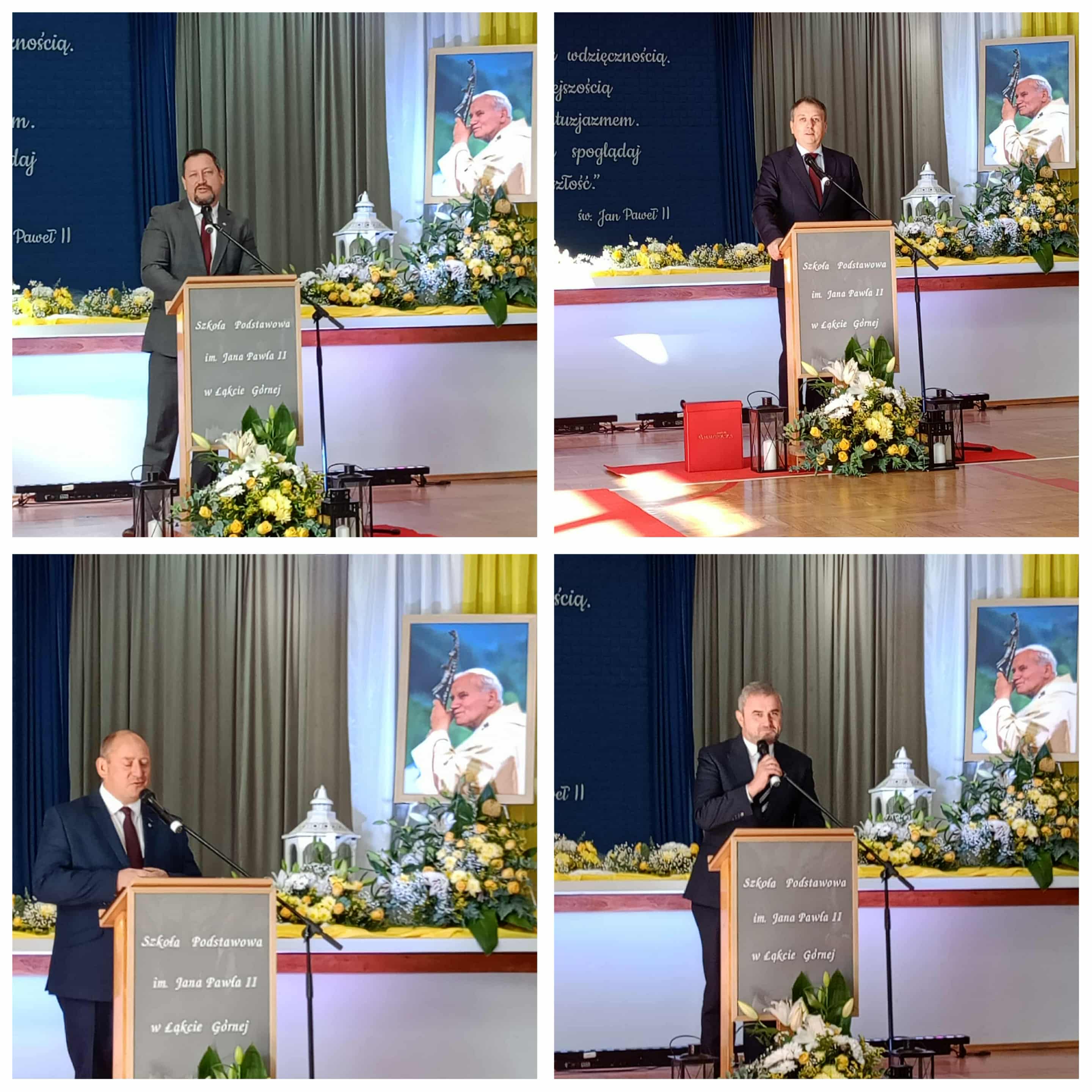 We wtorek 21 października 2025 roku w Łąkcie Górnej odbyła się niezwykle podniosła uroczystość — oficjalne otwarcie nowego budynku Szkoły Podstawowej im. Jana Pawła II w Łąkcie Górnej oraz poświęcenie nowego sztandaru szkoły. Był to dzień pełen wzruszeń, radości i dumy, który na długo pozostanie w pamięci uczniów, nauczycieli i wszystkich mieszkańców naszej miejscowości. W wydarzeniu uczestniczyli uczniowie, rodzice, nauczyciele, parlamentarzyści przedstawiciele władz samorządowych, duchowieństwa oraz zaproszeni goście: