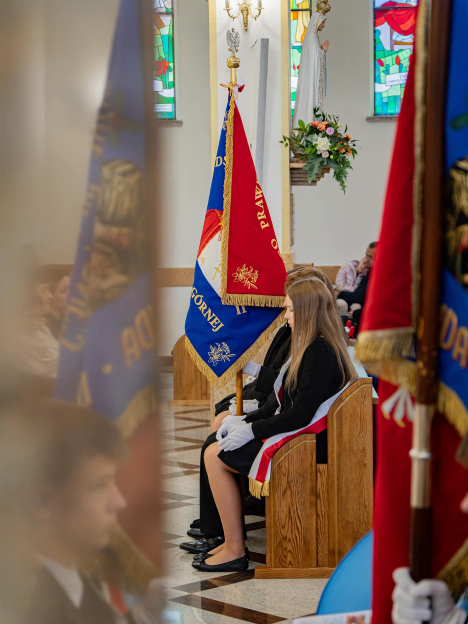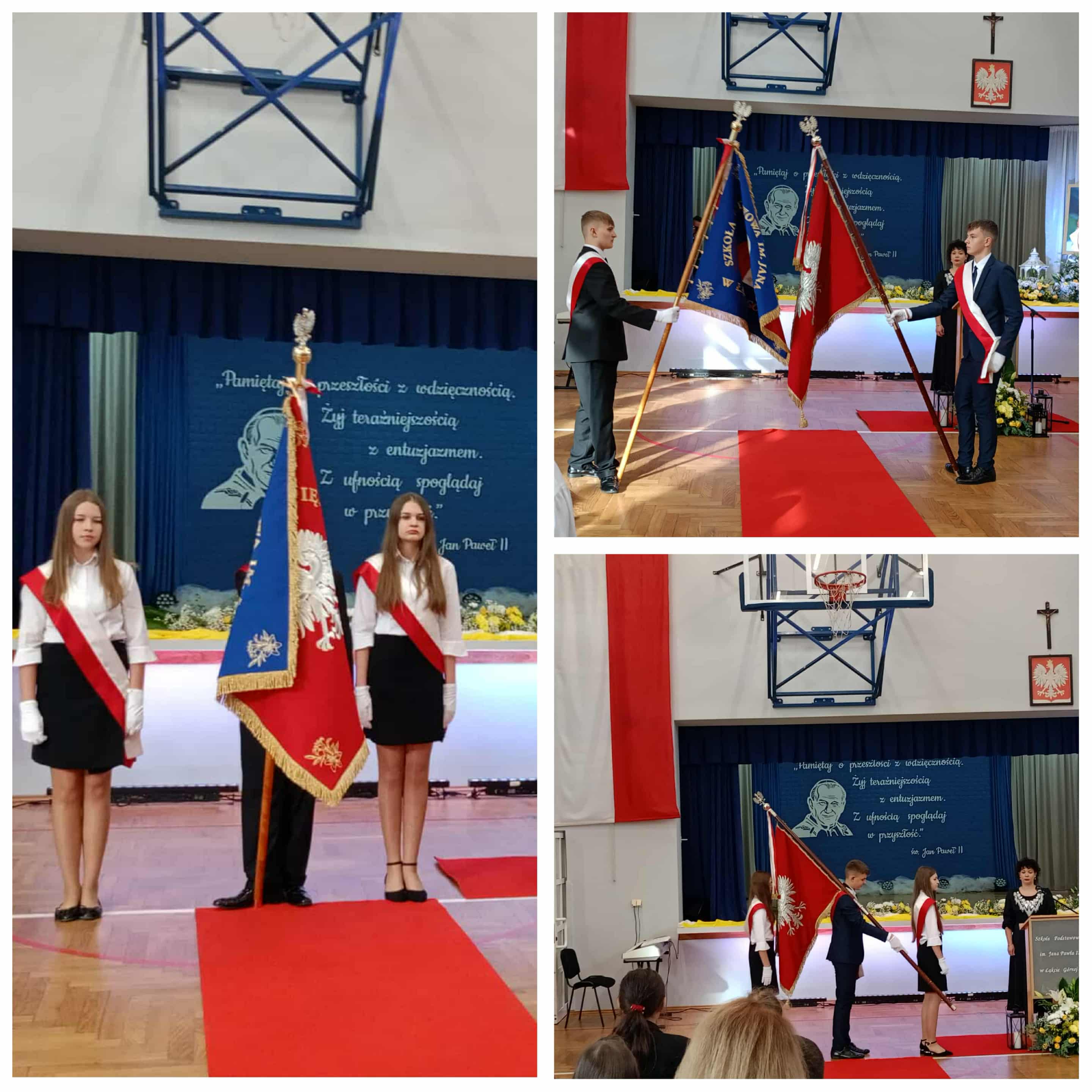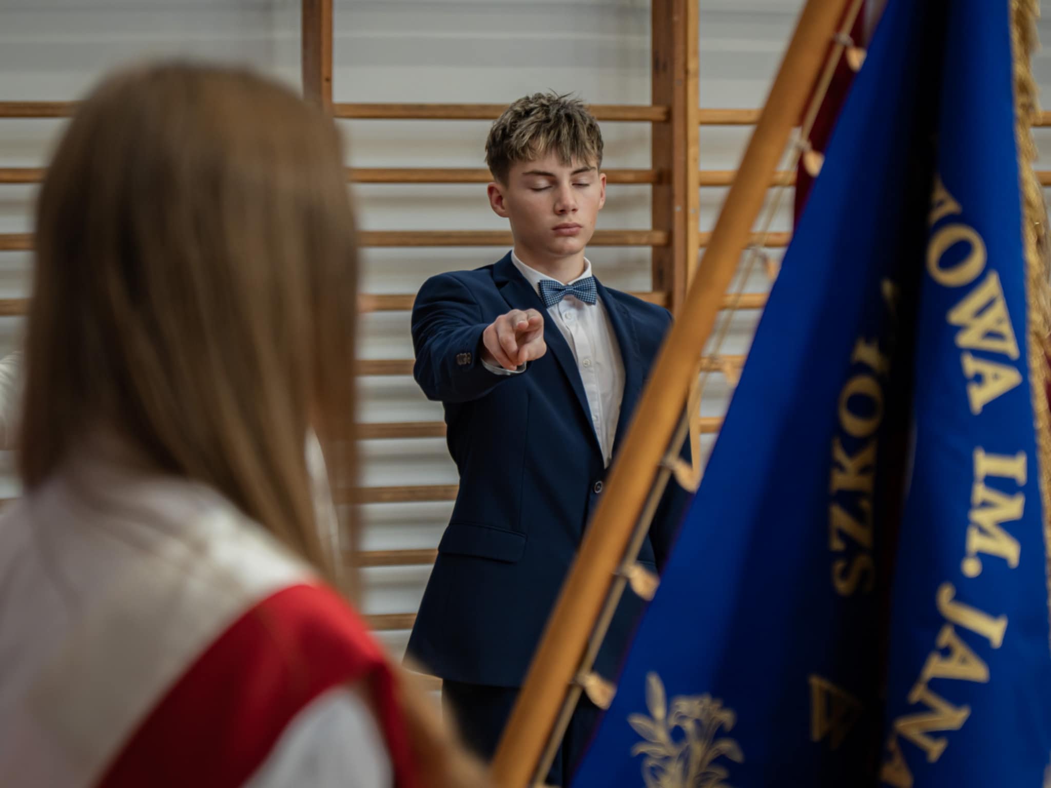 Kolejnym punktem programu był ceremoniał przekazania nowego sztandaru społeczności szkolnej oraz uroczyste pożegnanie dotychczasowego sztandaru, który przez wiele lat towarzyszył uczniom i nauczycielom w najważniejszych chwilach życia szkoły. Stary sztandar został z najwyższym szacunkiem umieszczony w Gablocie Pamięci, znajdującej się przy głównym wejściu do szkoły – jako symbol tradycji, historii i ciągłości szkolnych wartości.