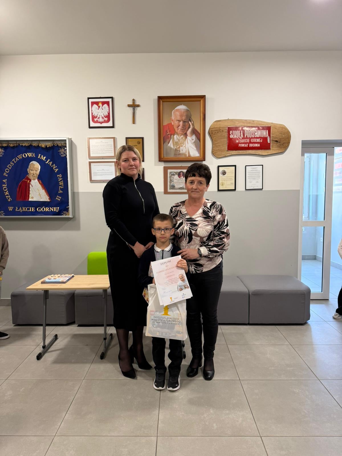 22 kwietnia 2026 roku, w obecności koleżanek i kolegów z klas I- III pani dyrektor wraz z nauczycielem plastyki wręczyła nagrody i upominki uczestnikom konkursu oraz dyplom i nagrodę dla Naszego Laureata.