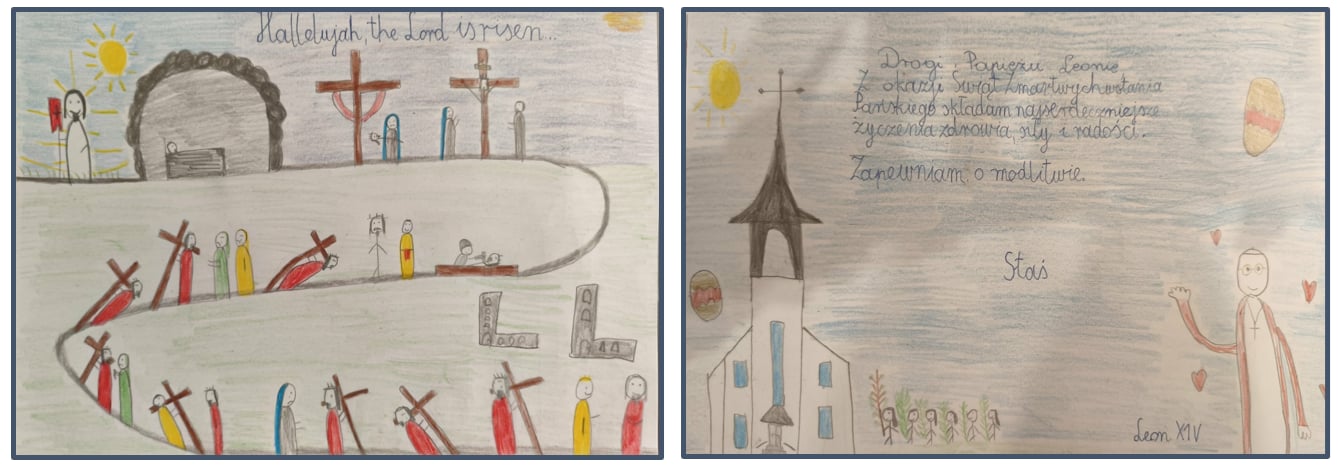 Z radością informujemy, że uczeń naszej szkoły Stanisław Juszczyk z klasy Ia został laureatem prestiżowego Ogólnopolskiego Konkursu „Kartka Wielkanocna do Papieża Leona” zajmując I miejsce. Jego praca jest jedną z 12 nagrodzonych, które trafią bezpośrednio do Watykanu, niosąc życzenia od polskich dzieci i młodzieży prosto do rąk Ojca Świętego Leona XIV!