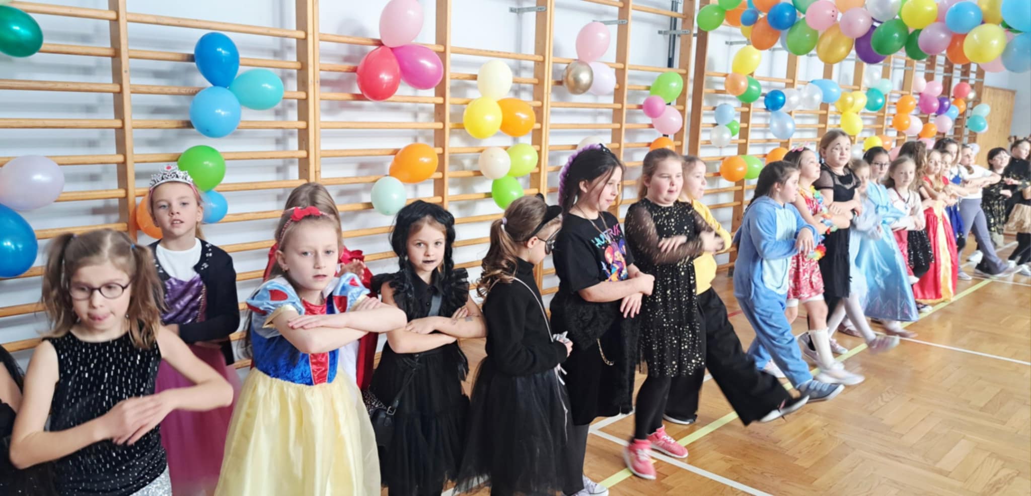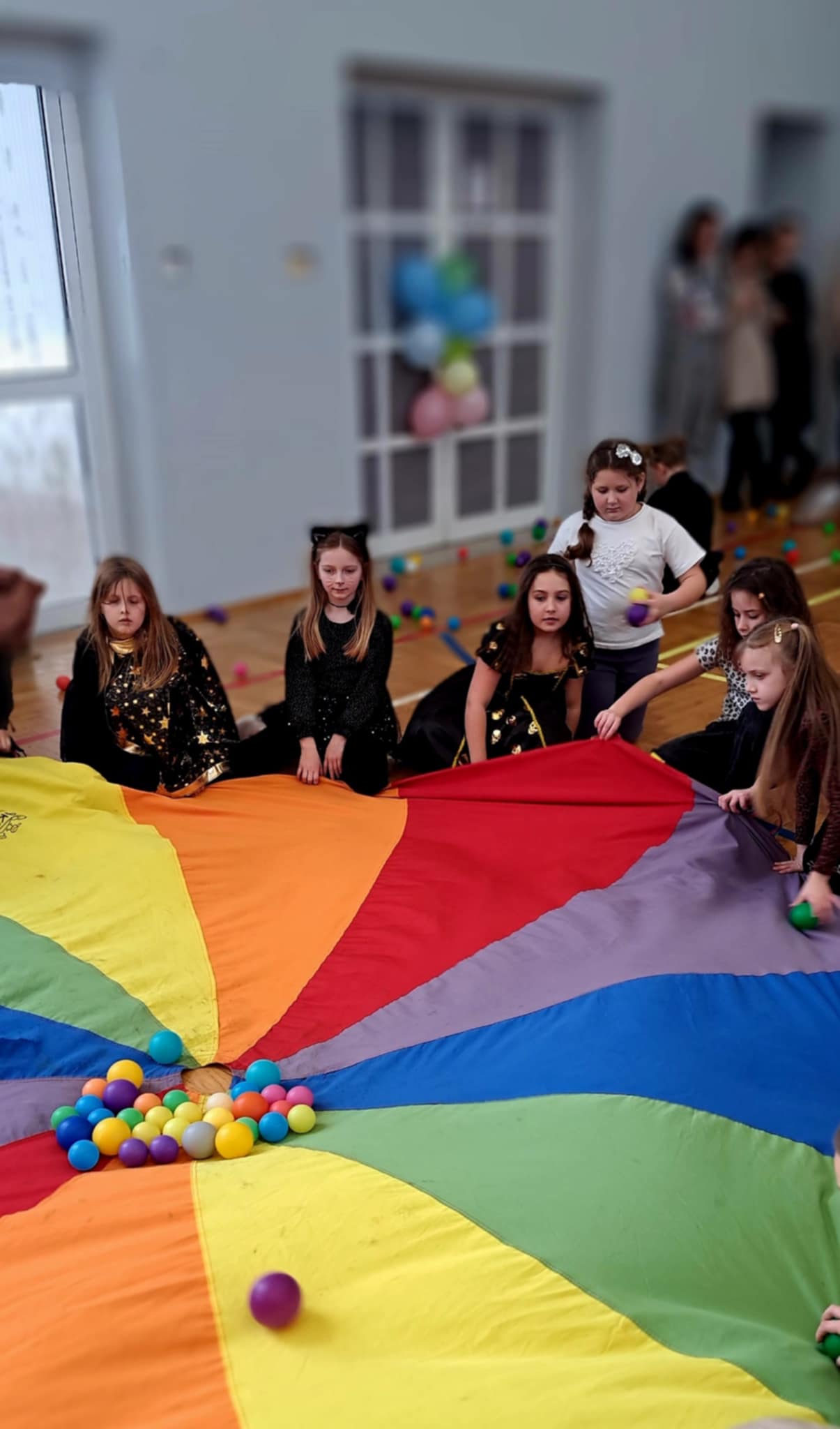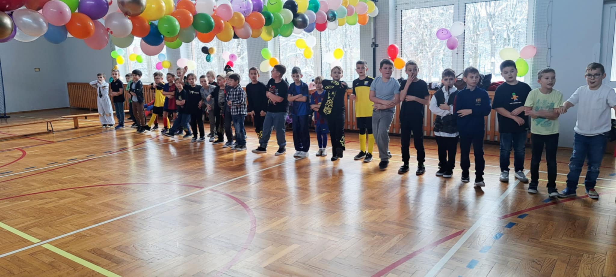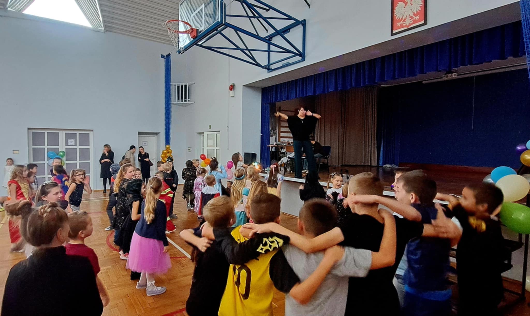 Sala gimnastyczna w godziniach przedpołudniowych wypełniła się uczniami klas 1-3, a przybyli na nią w radosnych nastrojach. Pani Kinga animator i wodzirej w jednym, zabrała uczniów w szaloną krainę radości i skocznych rytmów. Nie zabrakło zabaw z chustami animacyjnymi, ogromnymi piłkami czy misiami, a nawet bańkami mydlanymi. Był to czas na tańce i swawole przy muzyce. Radość i uśmiechy na twarzach dzieci były najlepszym dowodem na to, że andrzejki to świetna okazja do integracji i wspólnego spędzania czasu. Po szaleńczych pląsach uczniowie udali się do swoich sal lekcyjnych, gdzie czekał na nich poczęstunek przygotowany przez rodziców, za który serdecznie dziękujemy. Zabawa andrzejkowa okazała się wspaniałą przygodą, która na długo pozostanie w pamięci naszych najmłodszych uczniów.