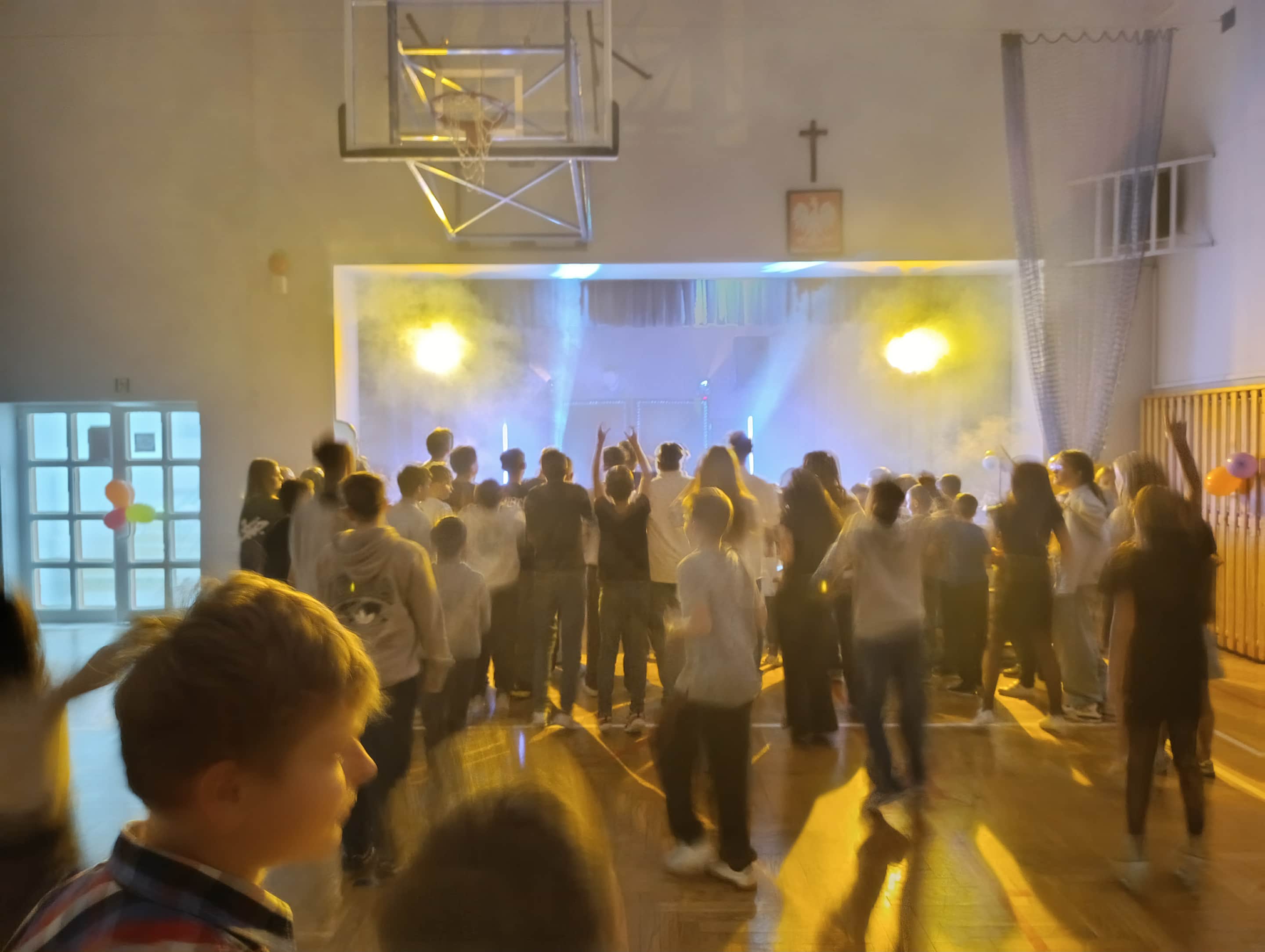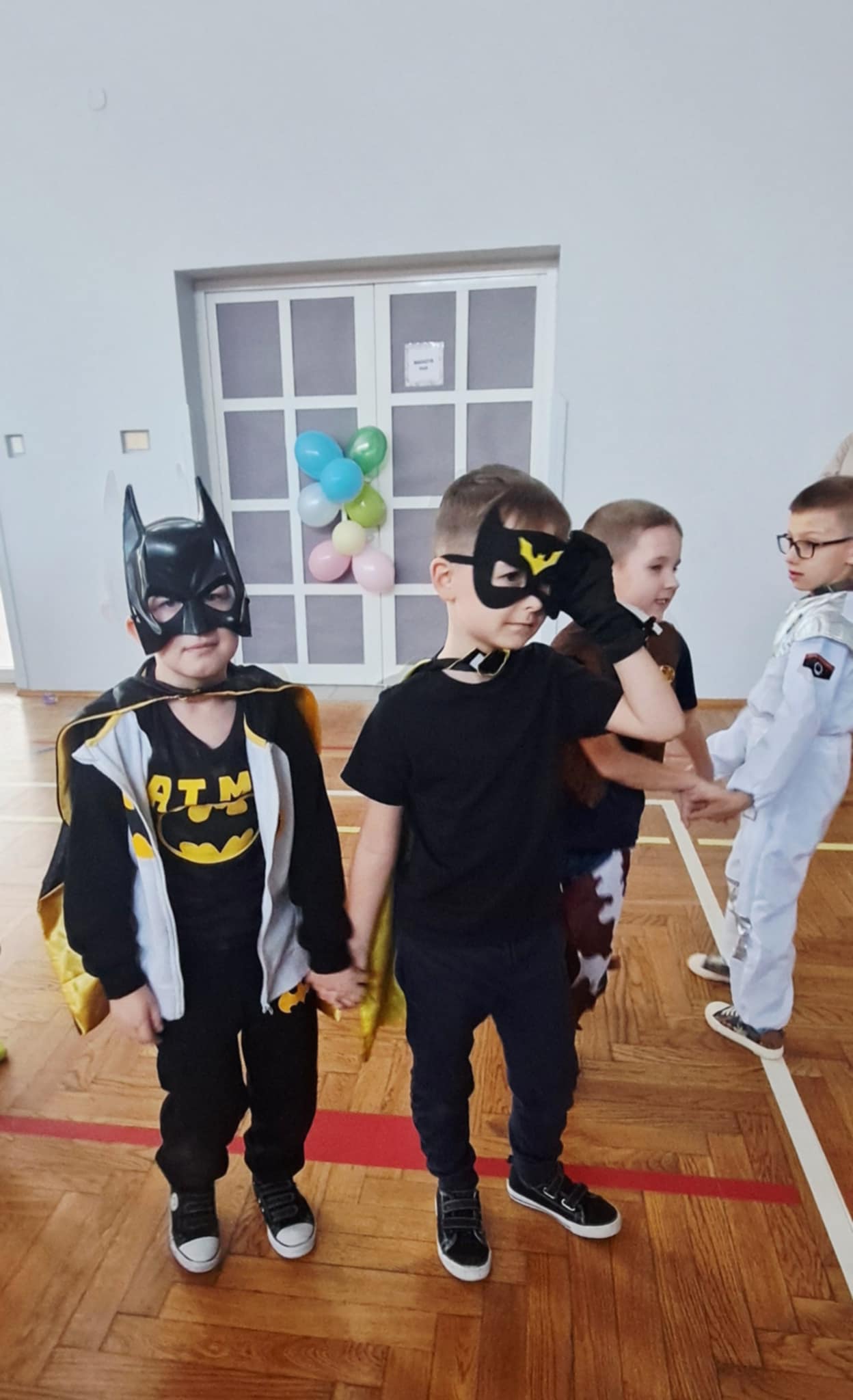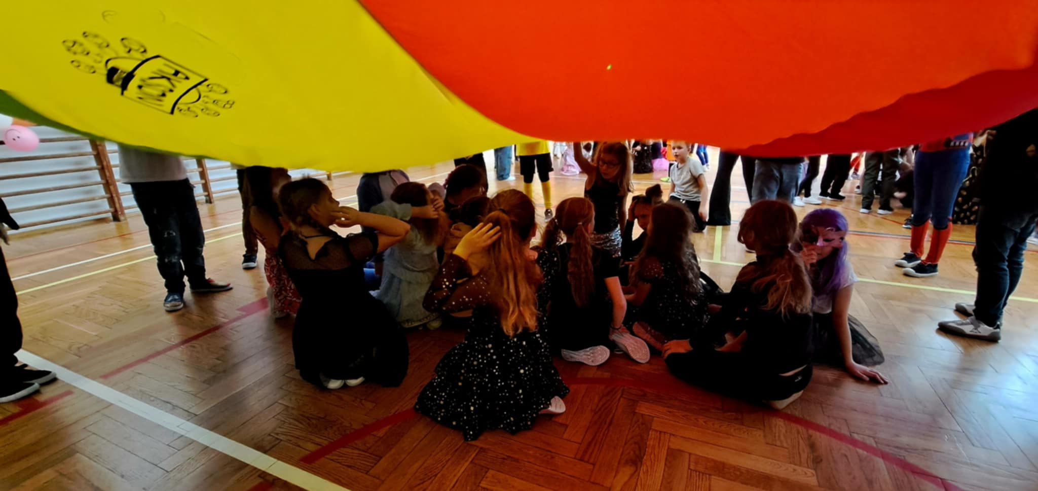 Sala gimnastyczna w godziniach przedpołudniowych wypełniła się uczniami klas 1-3, a przybyli na nią w radosnych nastrojach. Pani Kinga animator i wodzirej w jednym, zabrała uczniów w szaloną krainę radości i skocznych rytmów. Nie zabrakło zabaw z chustami animacyjnymi, ogromnymi piłkami czy misiami, a nawet bańkami mydlanymi. Był to czas na tańce i swawole przy muzyce. Radość i uśmiechy na twarzach dzieci były najlepszym dowodem na to, że andrzejki to świetna okazja do integracji i wspólnego spędzania czasu. Po szaleńczych pląsach uczniowie udali się do swoich sal lekcyjnych, gdzie czekał na nich poczęstunek przygotowany przez rodziców, za który serdecznie dziękujemy. Zabawa andrzejkowa okazała się wspaniałą przygodą, która na długo pozostanie w pamięci naszych najmłodszych uczniów.