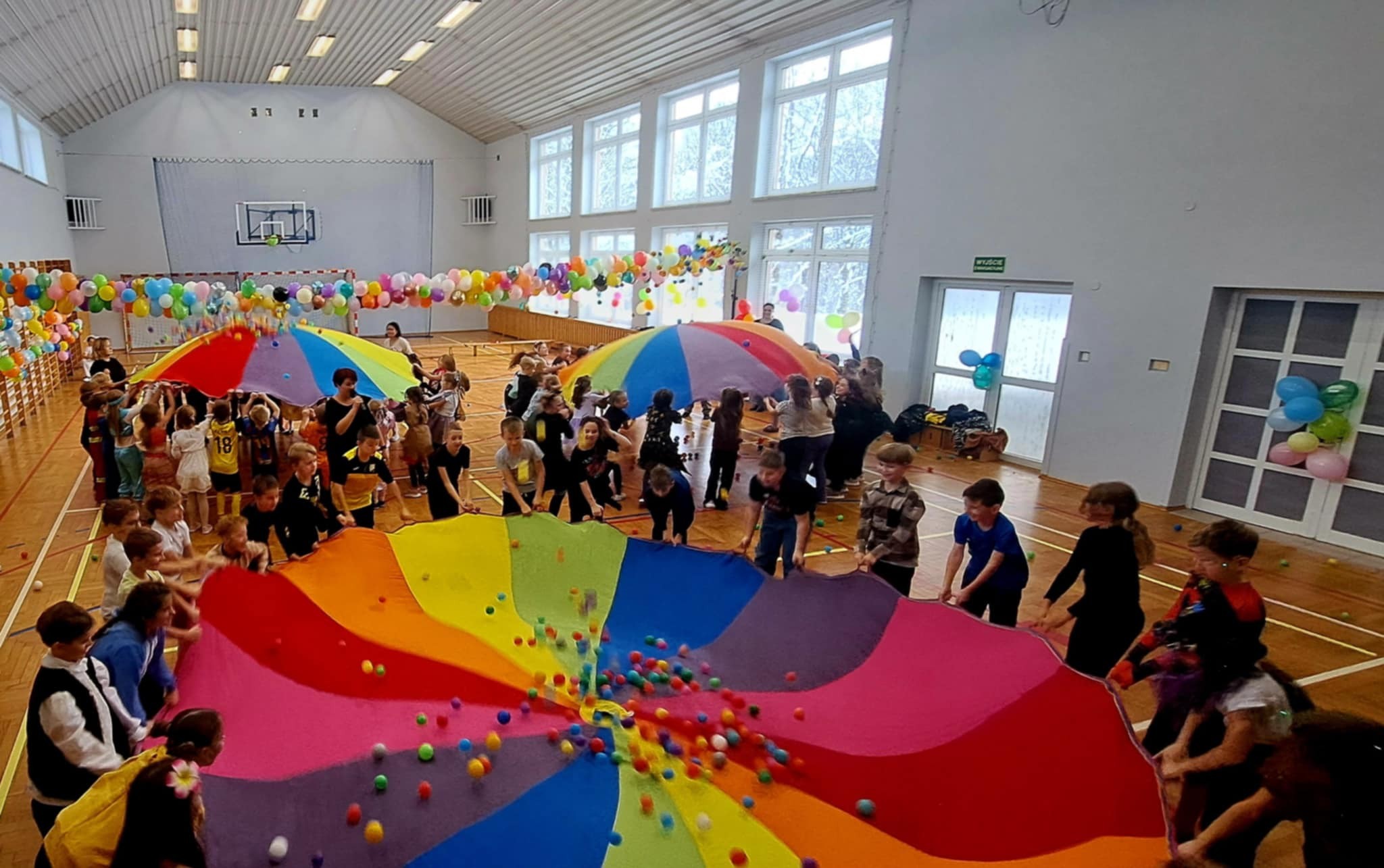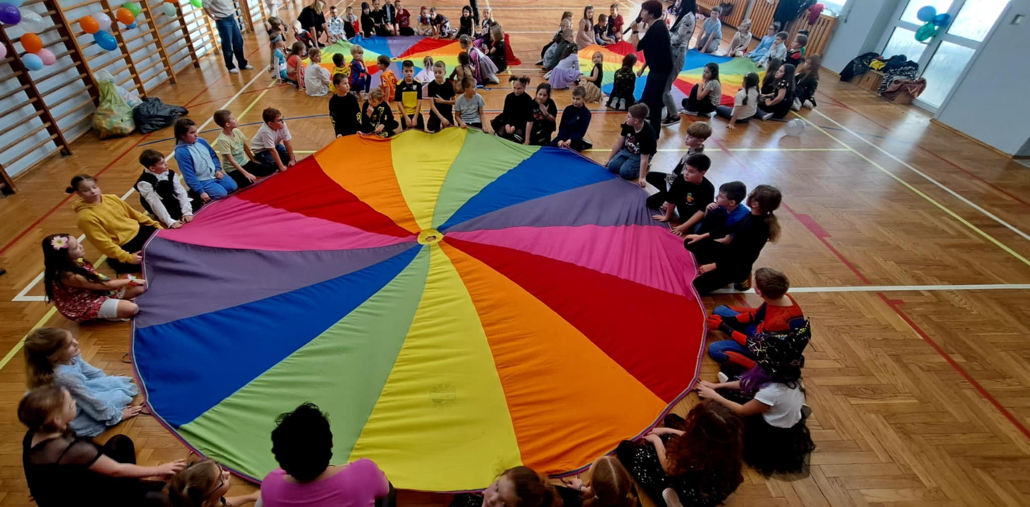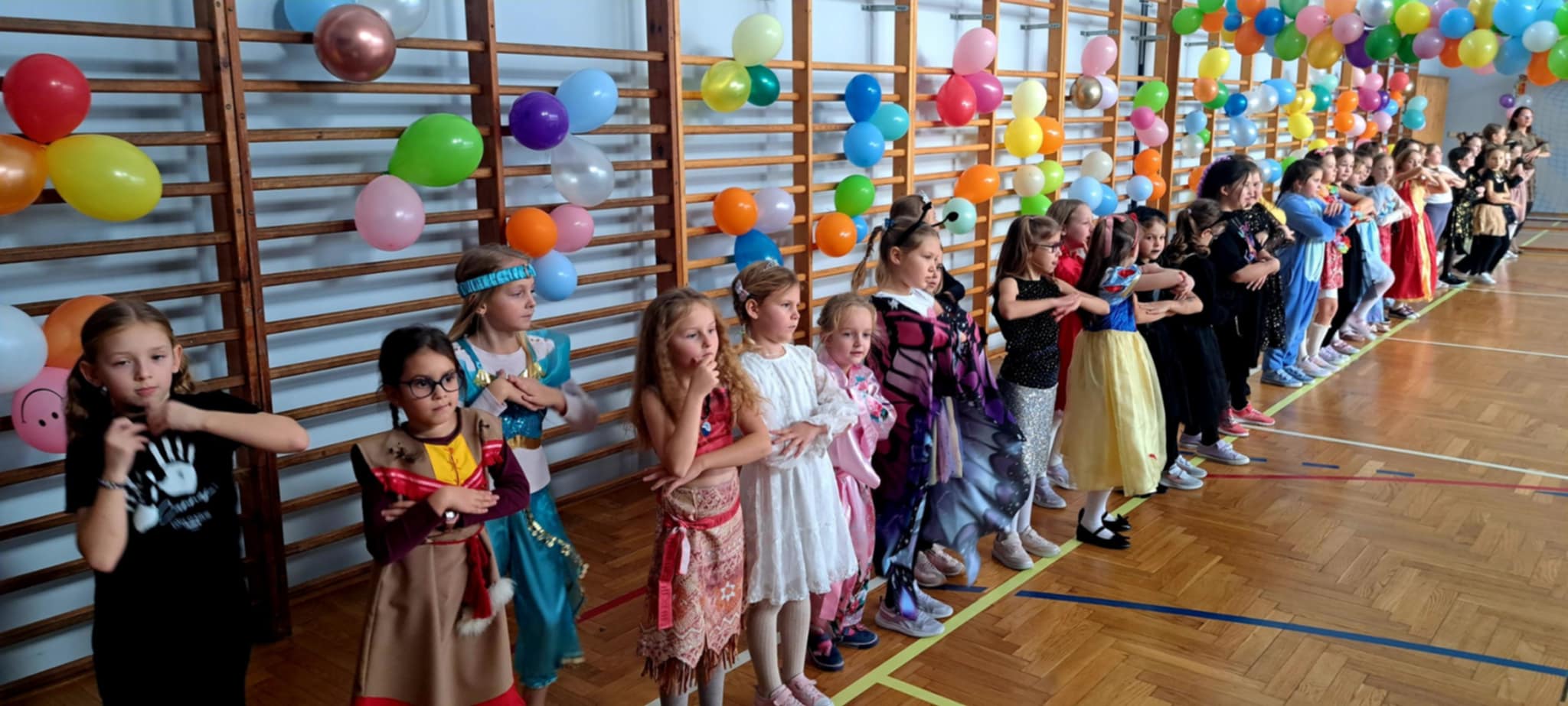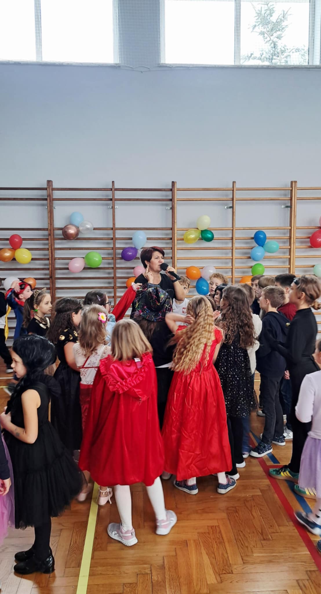Sala gimnastyczna w godziniach przedpołudniowych wypełniła się uczniami klas 1-3, a przybyli na nią w radosnych nastrojach. Pani Kinga animator i wodzirej w jednym, zabrała uczniów w szaloną krainę radości i skocznych rytmów. Nie zabrakło zabaw z chustami animacyjnymi, ogromnymi piłkami czy misiami, a nawet bańkami mydlanymi. Był to czas na tańce i swawole przy muzyce. Radość i uśmiechy na twarzach dzieci były najlepszym dowodem na to, że andrzejki to świetna okazja do integracji i wspólnego spędzania czasu. Po szaleńczych pląsach uczniowie udali się do swoich sal lekcyjnych, gdzie czekał na nich poczęstunek przygotowany przez rodziców, za który serdecznie dziękujemy. Zabawa andrzejkowa okazała się wspaniałą przygodą, która na długo pozostanie w pamięci naszych najmłodszych uczniów.