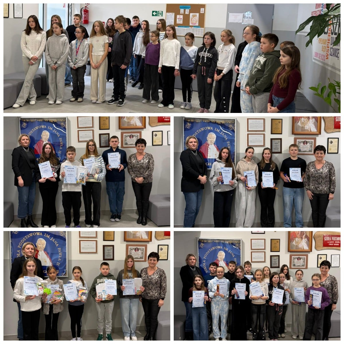 W środę, 18 lutego na szkolnym holi zostały ogłoszone wyniki konkursu oraz wręczone dyplomy i nagrody ufundowane przez p. Dyrektor Dorotę Juszczyk i p. Teresę Białkę.