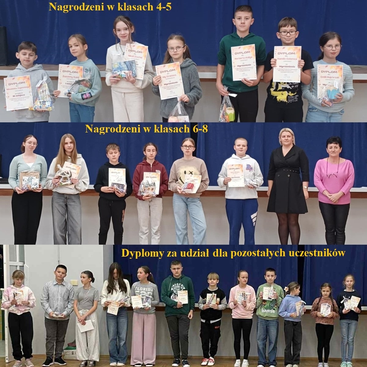 W środę, 15 października w sali gimnastycznej zostały ogłoszone wyniki konkursu oraz wręczone nagrody i upominki ufundowane przez p. Dyrektor Dorotę Juszczyk i p. Teresę Białkę.